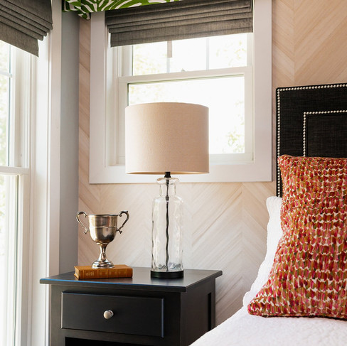 MBI takes on projects of any size but we especially love an entire home renovation or build. Creating cohesion from one room to the next while also giving a uniquely defined personality to each is a beautiful puzzle we love to solve. This lake home features natural textures in lighting, surfaces and wallpaper. These layered textures incorporate the lakeside environment of the home. For color, we chose shades of blue, green and orange. The rich colors are balanced with natural light, neutral walls, and white furnishings/cabinets. Patterned upholstery and pillows give the lake home dimension, vibrancy and an elevated aesthetic.