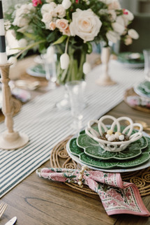 I have such a passion for creating and being creative! Setting the table each holiday is something I look forward to. For Easter, I love pulling true Easter colors- pastels, greens, & pink! Keeping is classic with black and white is always a great combo too!